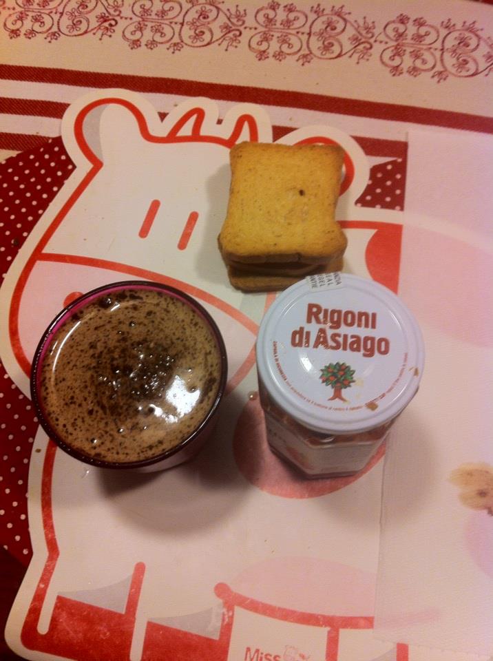 Poi si esce per delle commissioni, prima però intorno alle 9.30 faccio lo spuntino di metà mattinata con il mio yogurt intero al caffè, si esce e si va al negozio di biologico dove prendo un macchiatone con una bustina di dolcificante e quindi una brioche al cioccolato che era in vetrina ed aveva un aspetto buonissino.